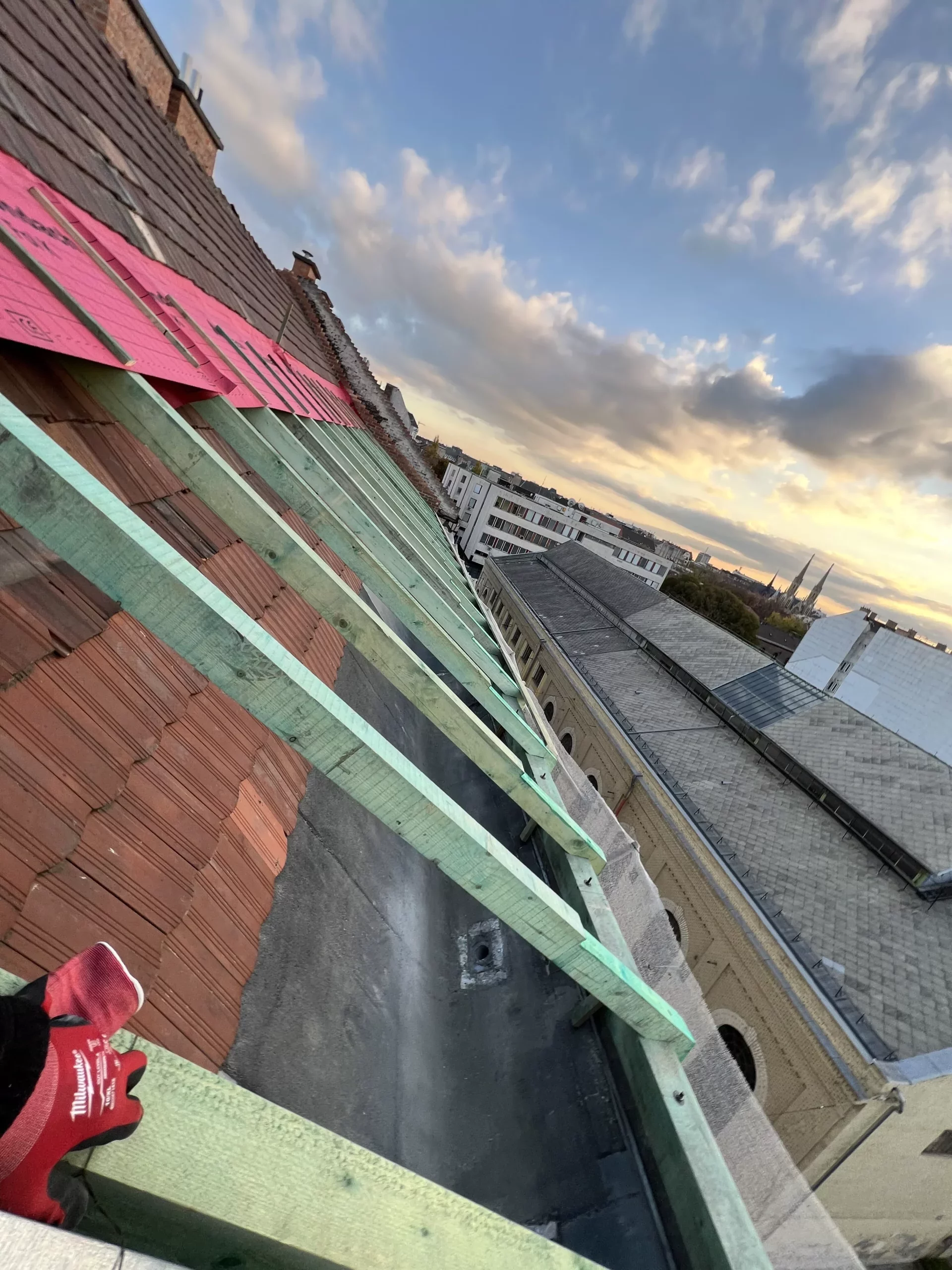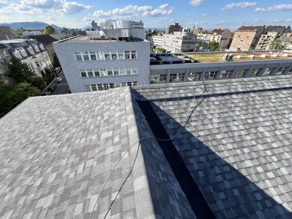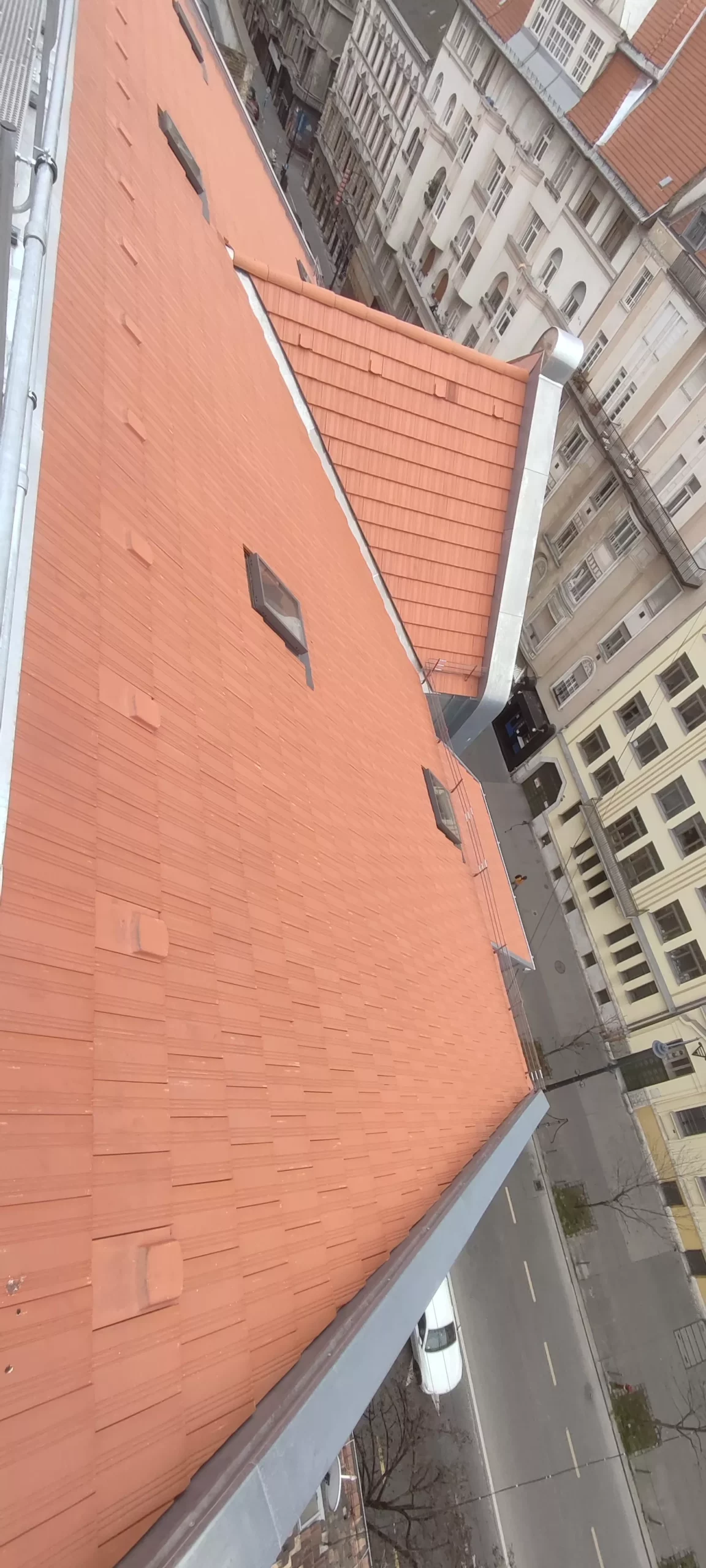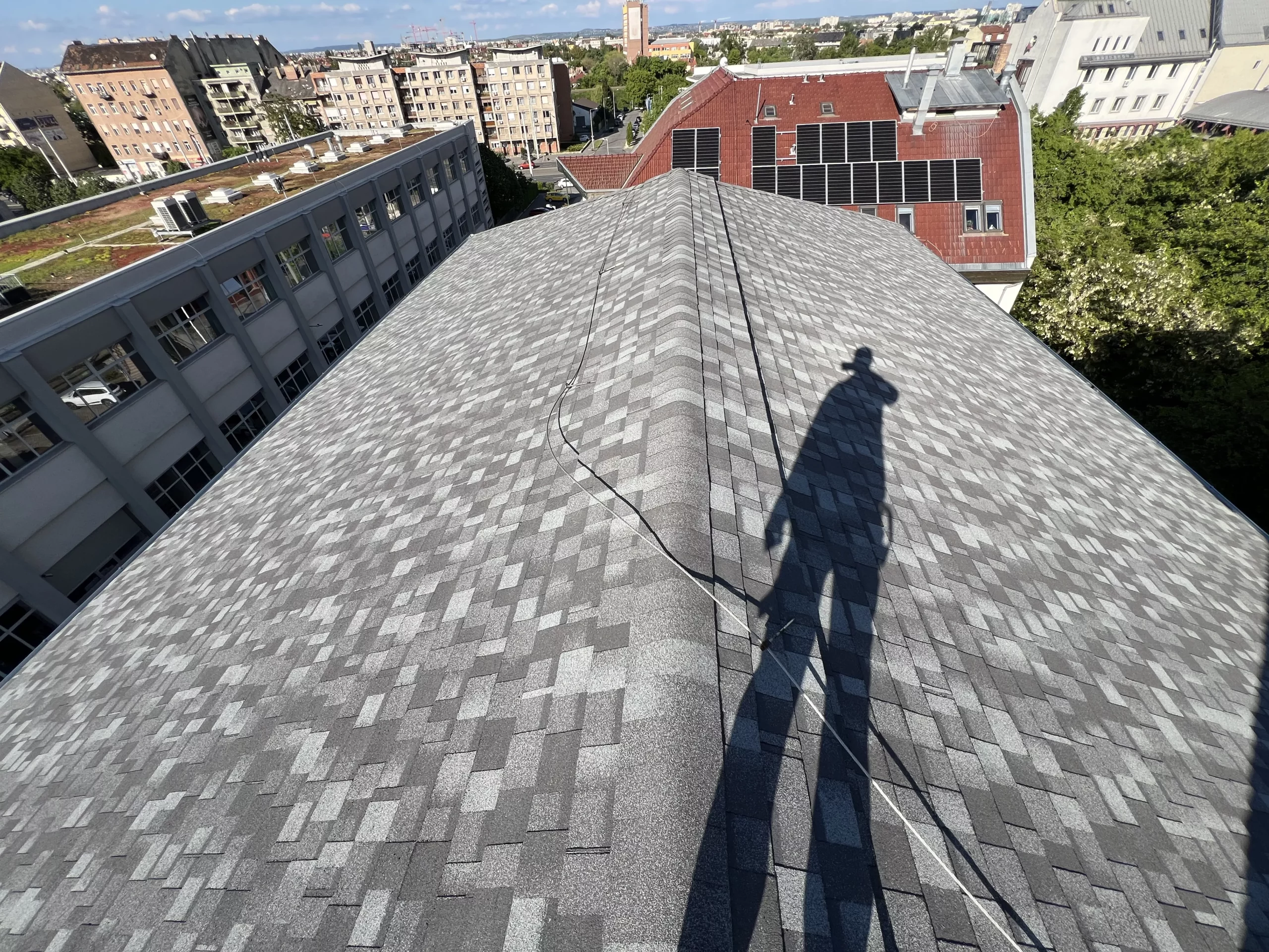 A társasház megrendelete az attikafal visszabontását, az attikacsatorna megszüntetését, új betonkoszorú öntését, macskalépcső újra falazását, a tetősík teljes felújítását, de most már új fekvőeresz kialakításával.