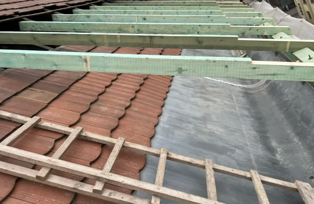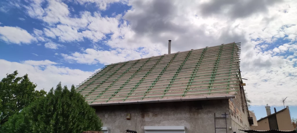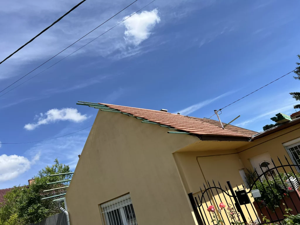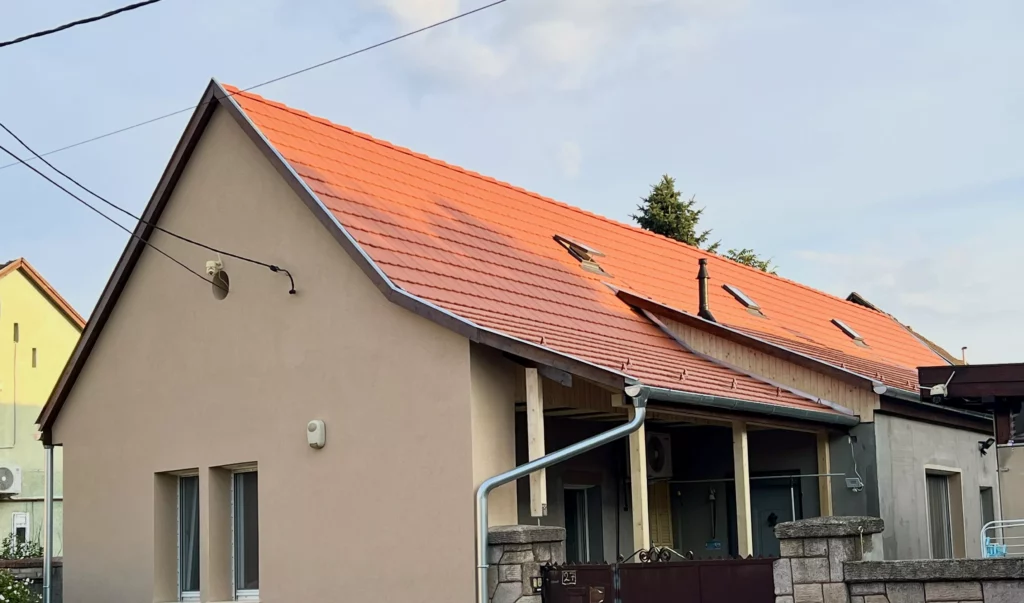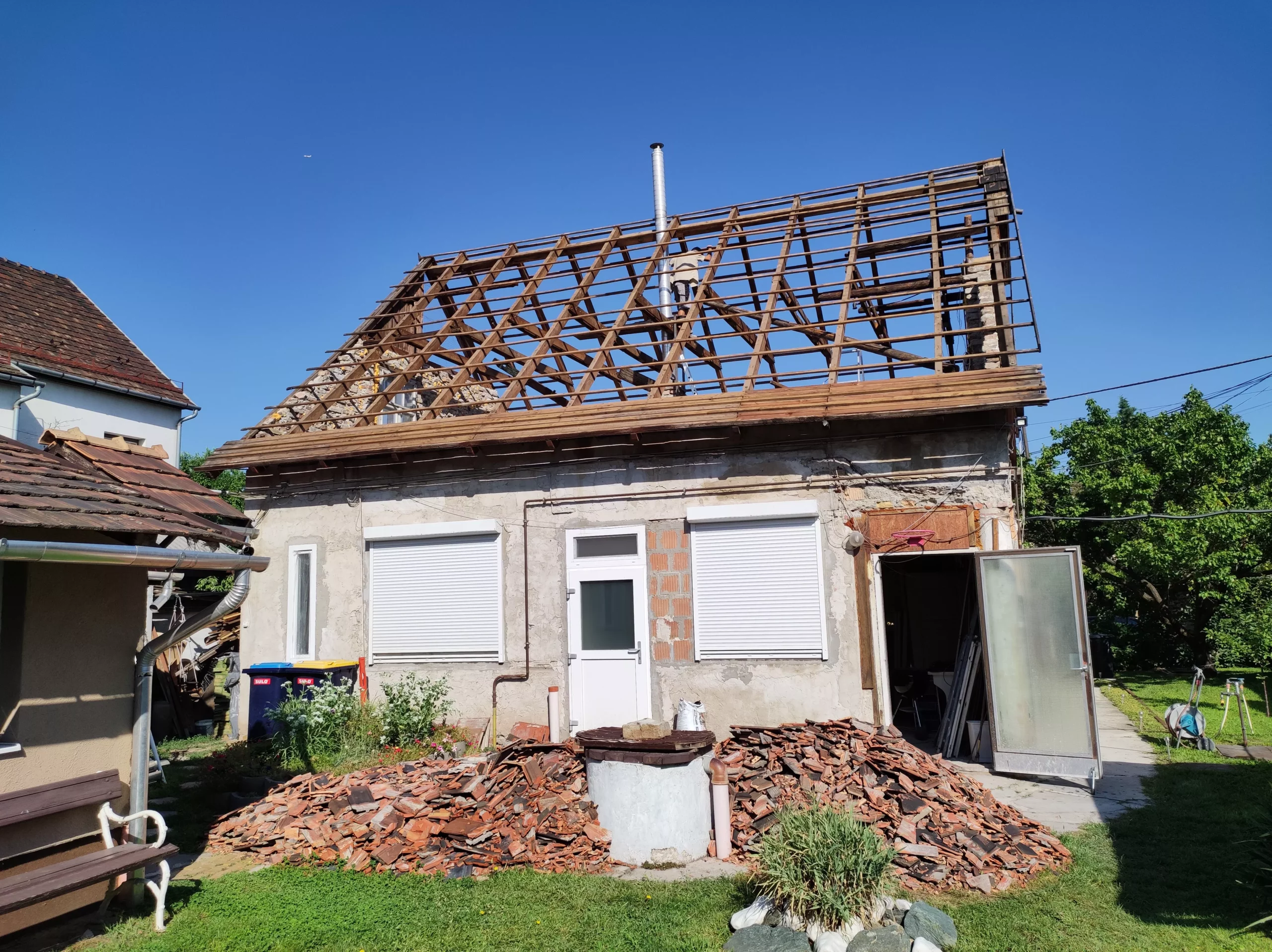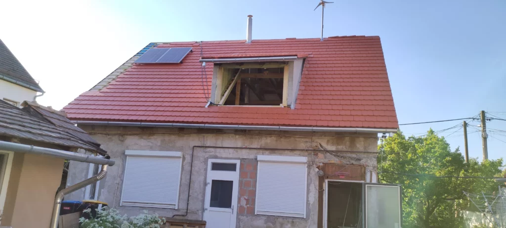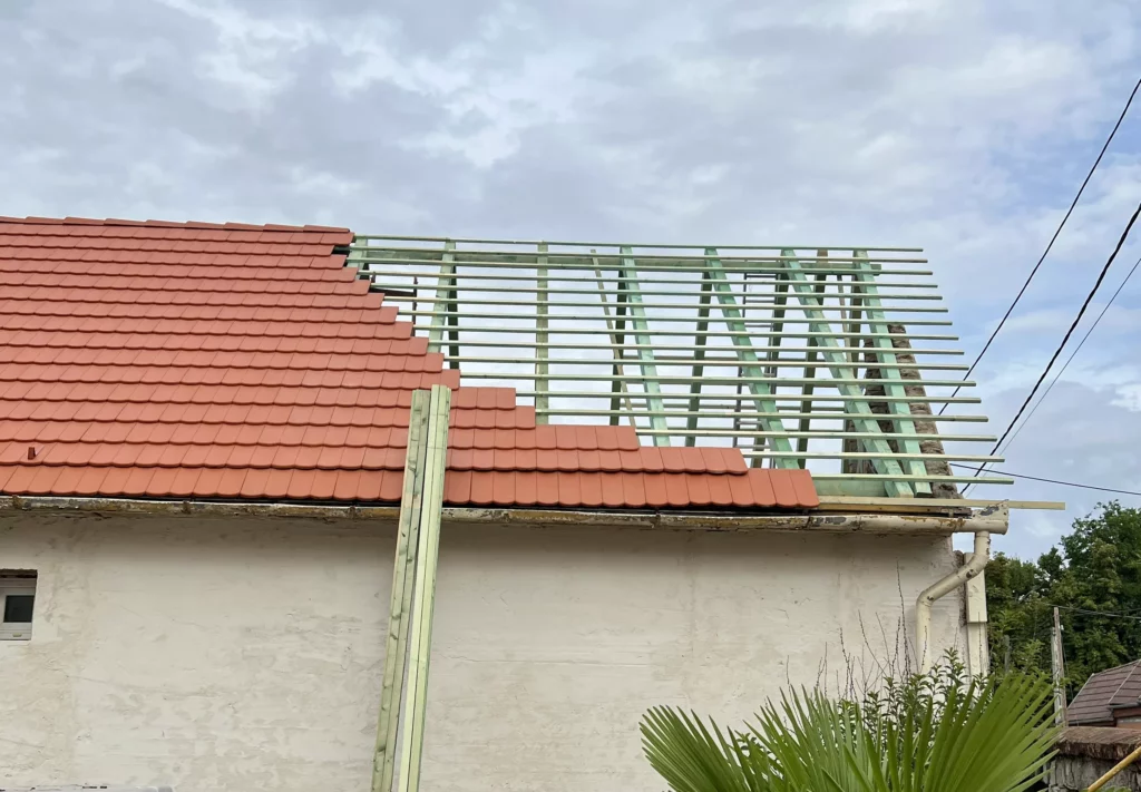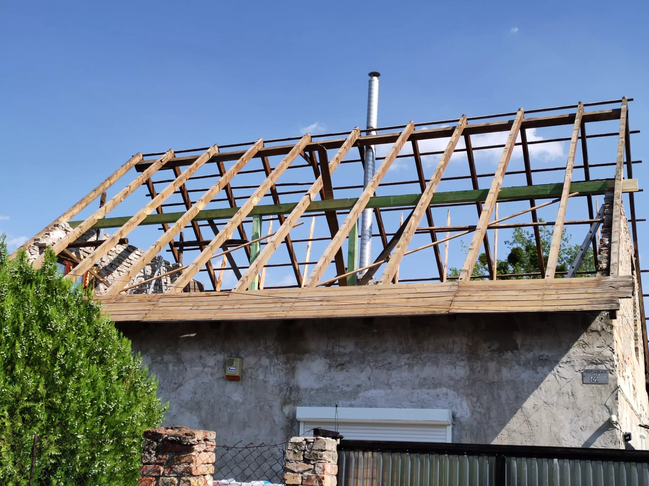 - A Régi tetőn szalagcserép fedés volt, de a kivitelezés több szempontból is hibás volt. Kihagyták az oszlopokat, derékszelemeneket és a tarélyszelemeneket, a szarúfaközöket túlságosan is nagyra hagyták. Emiatt meghajlottak a szarúfák, és a cseréplécek is, majdnem összedőlt a tető.