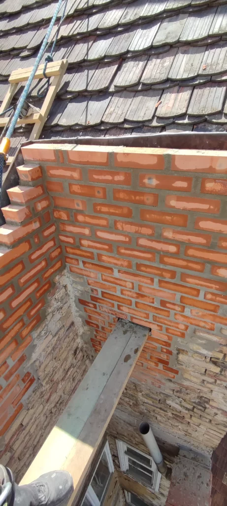 - Macskalépcsők és tűzfalak 5 sorig történő visszabontása, majd újrafalazása.