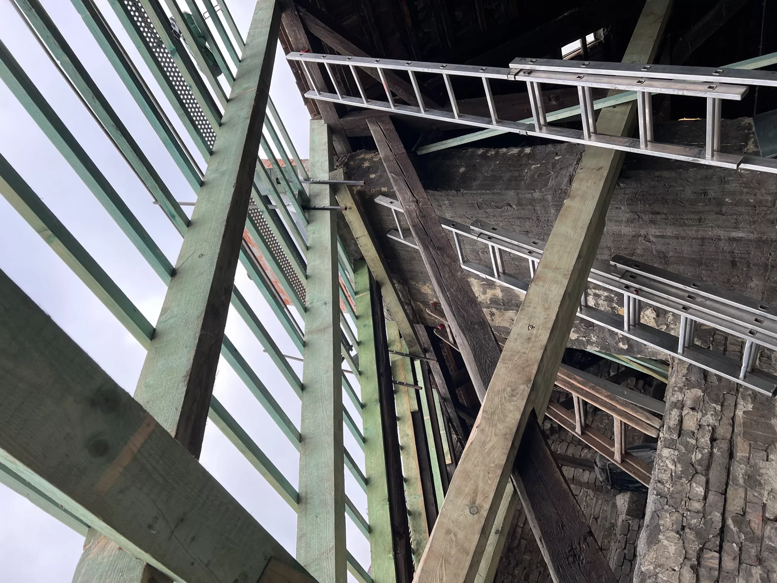 – Teljes csomópontot kellett cserélni. Oszlopot, derékszelement, könyökpántokat, fogópárokat, szarúfákat, cserépléceket