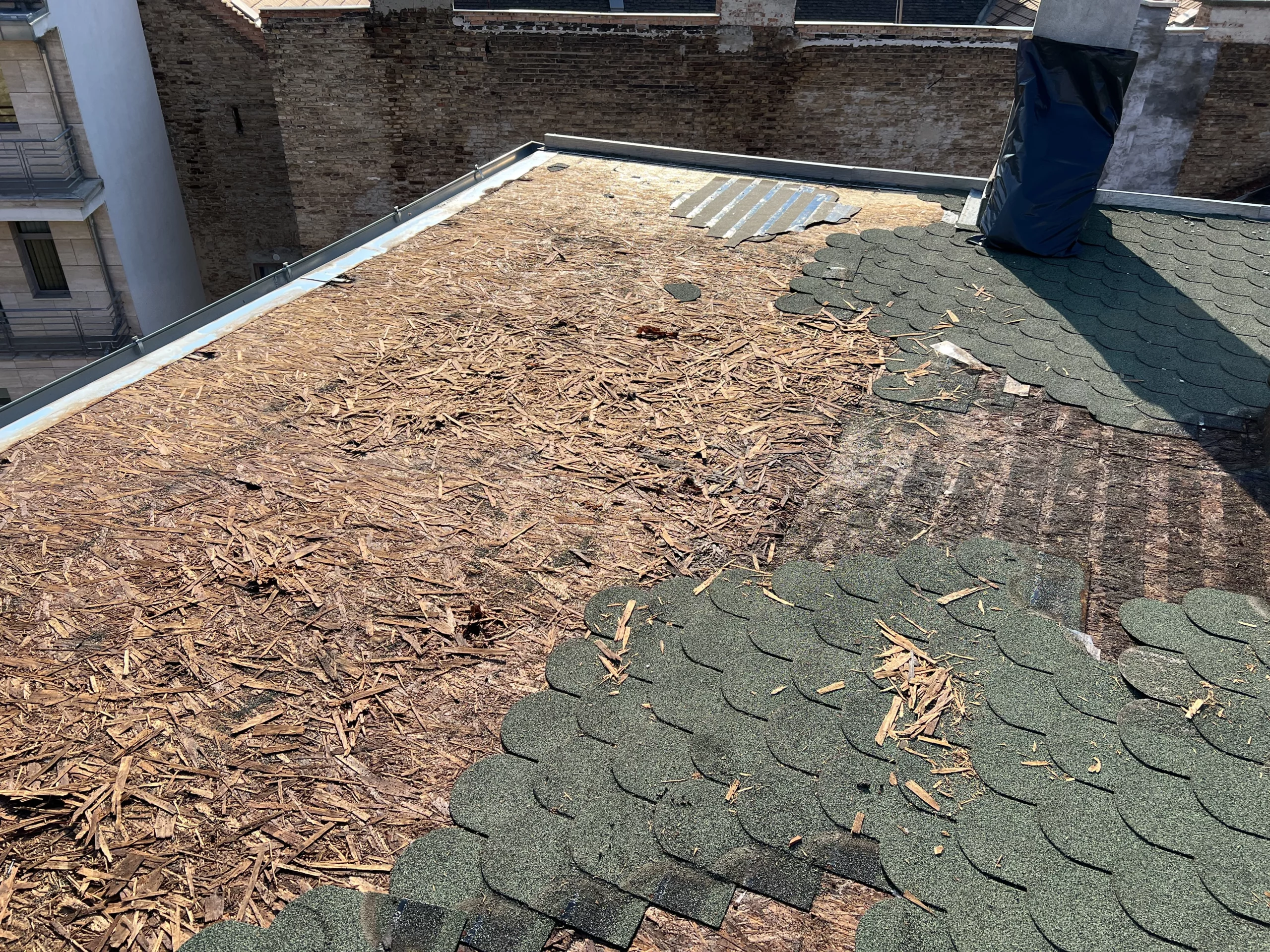 - A zsindelyfedés teljesen elöregedett, tönkrement.