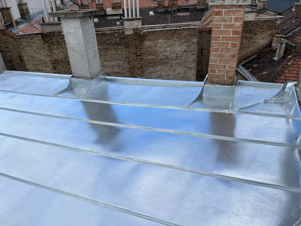 Attika csatorna cseréje fekvőereszre, tetősík felújítása