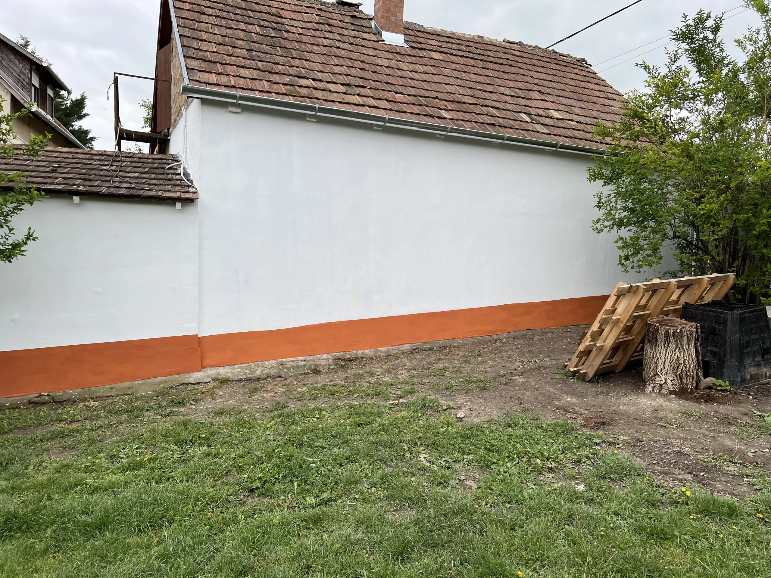 A munka megkezdése előtt mind az utcai, mind az udvari homlokzatot veszélytelenítettük, és grúzoltuk.